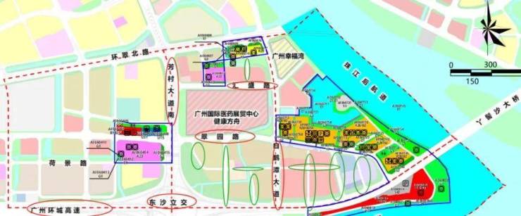 项目地块位于白鹅潭商务区。北侧为广船片区、东塱村,南侧为平洲水道,西侧为广钢新城。健康方舟、广州幸福湾、珠江天悦已建,其余地块尚未建设。片区周边轨道交通资源丰富,紧邻地铁10号线东沙站,在建轨道线路有地铁10号线(计划于2024年开通运营)、11号线和22号线。