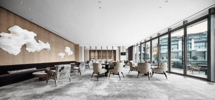 云山壹号会所,沿袭无间“摩登东方”设计语言,在现代的建筑构成空间中隐埋一条含蓄的东方美学脉络,为当代空间注入古典诗意表达。