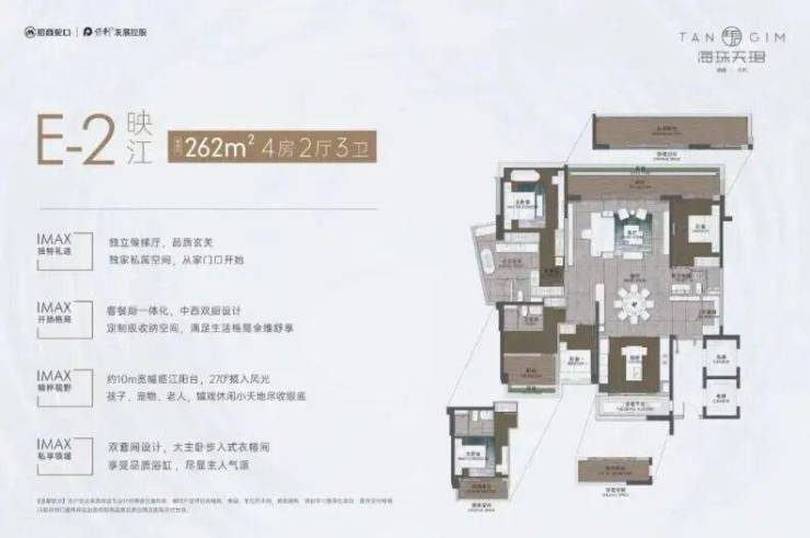 多样化的产品布局和户型设计 海珠天珺项目提供多种户型选择,包括朝向主导的轻奢产品、景观主导的豪宅产品以及奢华大平层户型,满足不同家庭结构和需求。产品在设计上强调空间的可变性和灵活性,适应二孩家庭或三代同堂家庭的多种功能需求,为业主提供个性化的居住选择。