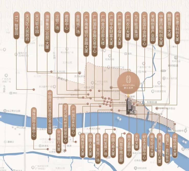 金融城东区聚焦科创总部,已引入澳门国际银行、酷狗音乐等金融机构及科技企业,片区规划330米地标建筑,联动沿江集群焕新“岭南版曼哈顿”风貌。