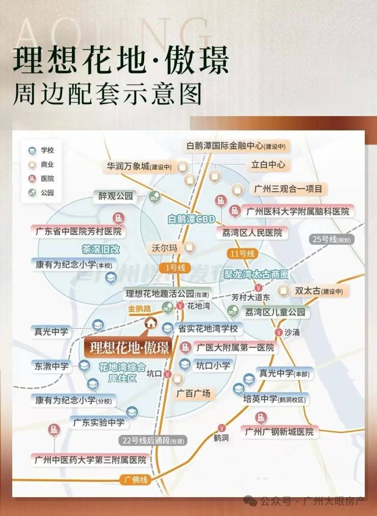 万科理想花地傲璟,可以说是位于心脏地段的核心位置。