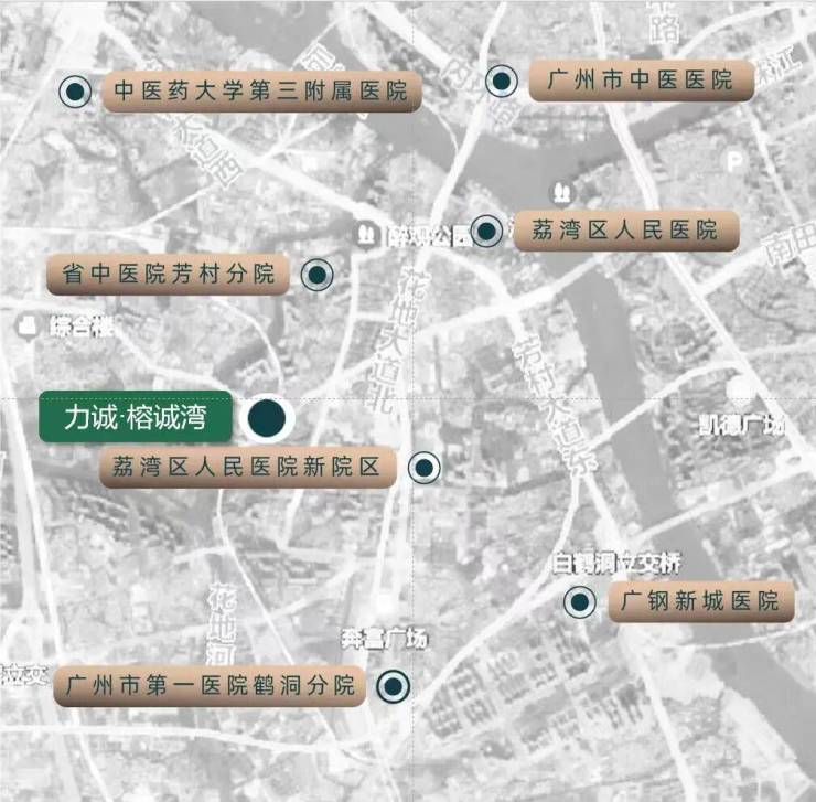 前沿综合医院环绕,全面照护:省中医院芳村分院、中医药大学第三附属医院、荔湾区人民医院、荔湾区人民医院新院区(已封顶)和广钢新城医院等。