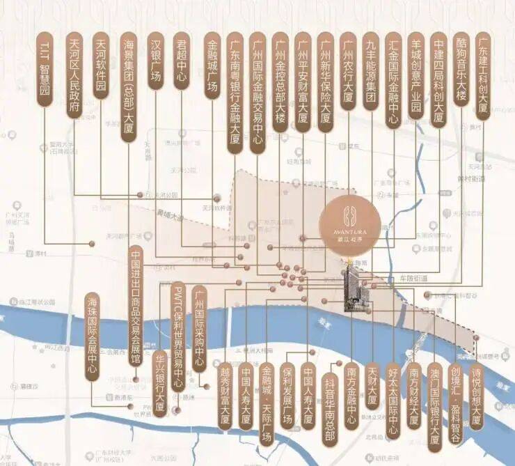 金融城东区聚焦科创总部,已引入澳门国际银行、酷狗音乐等金融机构及科技企业,片区规划330米地标建筑,联动沿江集群焕新“岭南版曼哈顿”风貌。