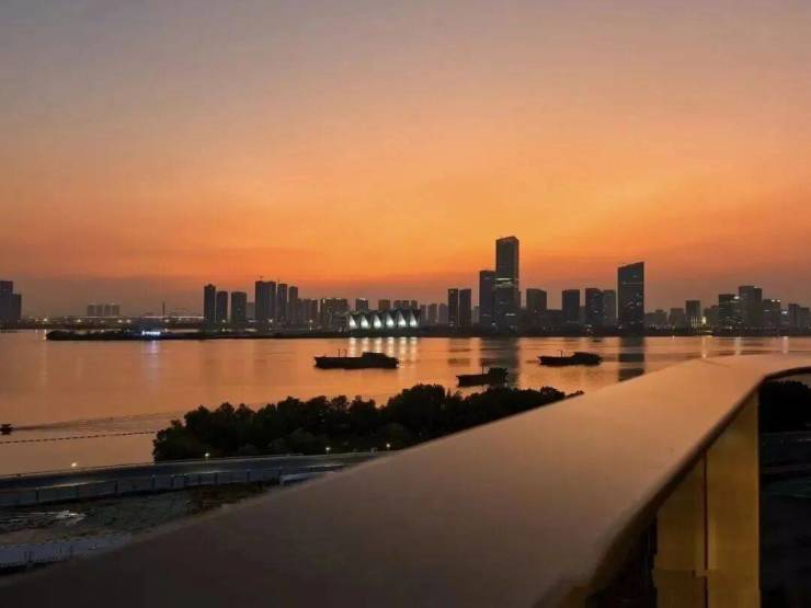 项目摒弃了传统涂料的敷衍,选用铜韵铝板、浅灰色镀膜玻璃与渐变银灰色色彩釉玻璃,三者在光影下碰撞出层次丰富的质感。铜韵铝板经过防腐工艺处理,随着时间的推移会沉淀出温润的光泽,让建筑拥有 “生长的痕迹”;镀膜玻璃既过滤了刺眼的紫外线,又最大限度保留了江景的通透感,实现 “观景而不被打扰”;渐变色彩釉玻璃则让建筑在不同角度呈现出不同的光影效果,如江波般灵动。