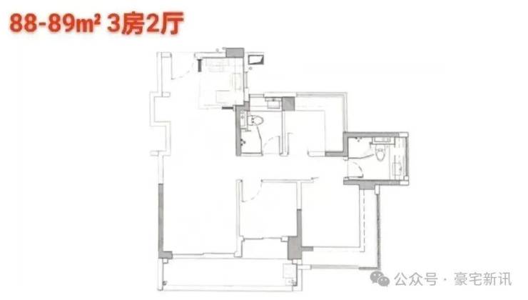 网传户型图已流出,88-89㎡为竖厅3房2卫,106㎡为双龙抱珠4房2卫,127㎡为通透4房2卫。