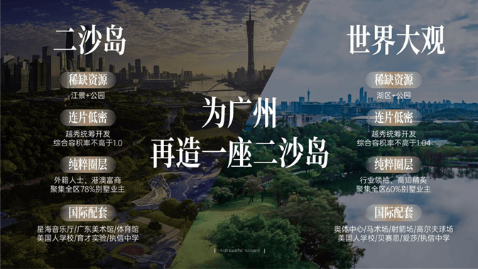业主圈层高度一致,二沙岛以外籍人士、港澳富商、行业领袖为主,世界大观则以互联网IT新贵、高知菁英等为主。