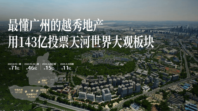 正因如此,最懂广州的越秀地产,斥资143亿,以总价地王的规模连续拿下世界大观一至三期地块,持续推进低密连片开发,努力为广州再造一座“二沙岛”。