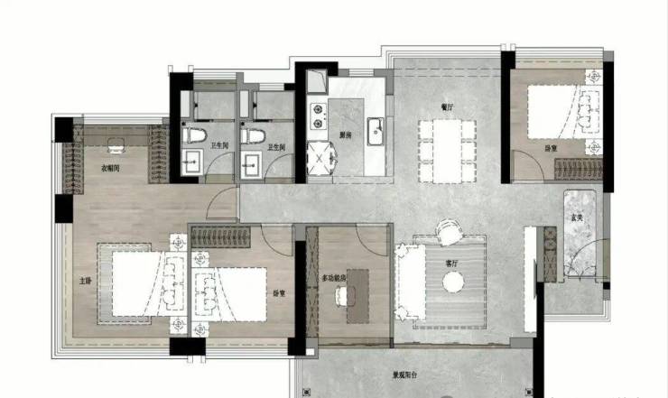 🔸景观舱主卧小家化:阳光衣帽间、360°环幕景观