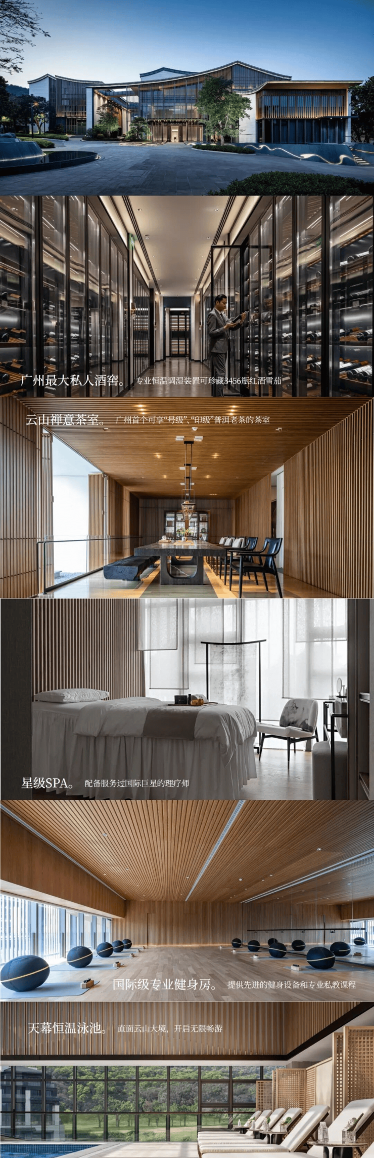 会馆配置云山茶室、红酒品鉴、酒窖、雪茄房、SPA房、儿童活动区等圈层社交平台,恒温泳池、健身房、瑜伽室等国际级康体设施。