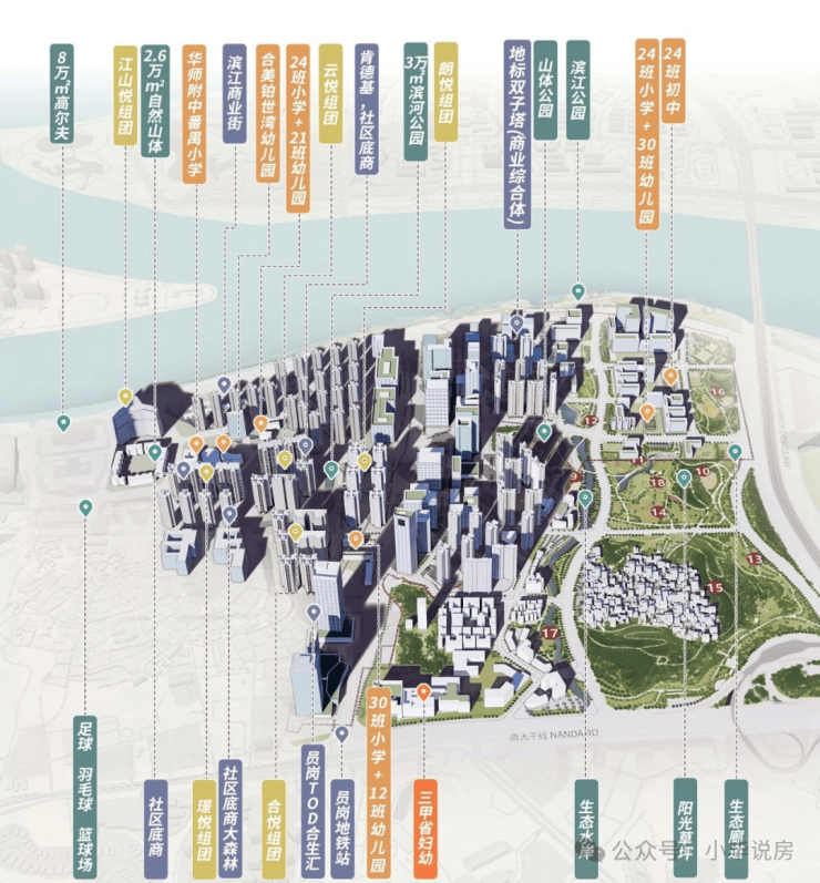 项目超300万㎡产城融合代表作,重点布局“住宅-商业-产业-交通-教育-生态”6大领域,以8大价值打造宜居、宜游、宜业的理想幸福之城。双创城聚焦人工智能、数字经济、新能源汽车研发等前沿领域产业,预计规划建造约20栋写字楼和商业体,引进100家以上科技型企业,50家以上世界知名研发总部,企业人员数万人