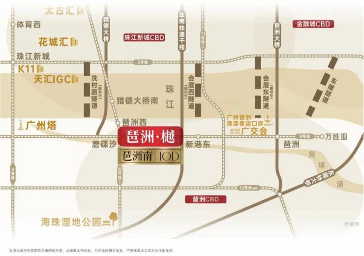 琶洲樾华樾项目坐落于琶洲西区核心,紧邻新港东路,南望黄埔涌,与北侧琶洲西总部集群遥相呼应。这种稀缺的地理位置,决定了其不可复制的价值。