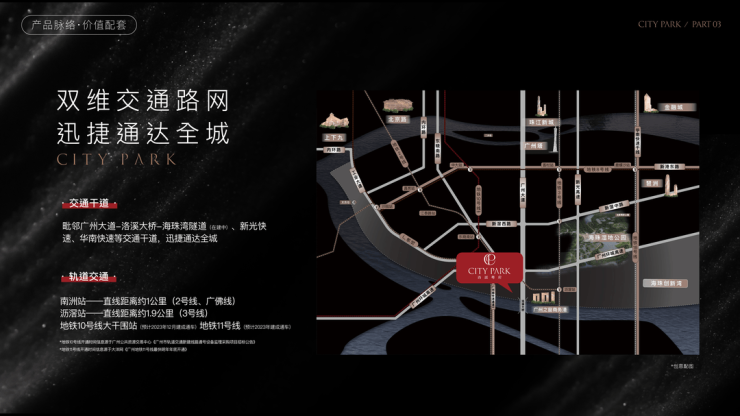 对自驾的业主,这里沿着沥滘路可接驳广州大道、新光快速。无论去琶洲、万博还是珠江新城、金融城,都是20分钟左右车程。
