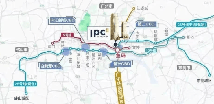 地铁——地铁5号线、地铁13号线交汇站鱼珠站B出口附近,直达广州主城区;还有有轨电车、高铁枢纽站加持;