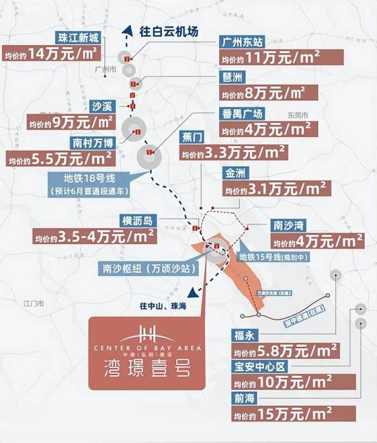 • 凤凰大道:南沙城市开发的黄金主轴,从蕉门区府到灵山岛、到横沥岛,下一个开发热点就在珠江街南沙枢纽区块,与其追高入市横沥岛,不如提前布局投资南沙枢纽区块,3公里10分钟车程直达横沥岛(最高楼面地价19140元/㎡),吹风直奔4字体,本案属于绝对的价格洼地。