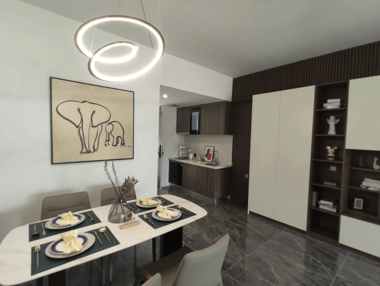 餐客厅一体化设计,聚会观影、宴请宾客……宜动宜静间,工作生活模式随意切换;配置Nubryte智能系统,实现语音控制、全屋智能家居联动;融入智能家居——小厨机器人,可声控查菜谱、听歌、看电影等,满足各类需求,用精致细节诠释品质生活。