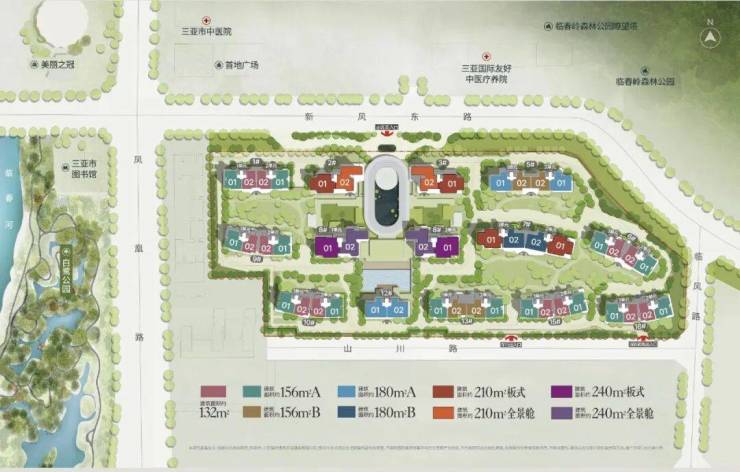 ◎15分钟鼎配生活圈繁华浓度:蓝海购物广场、三亚湾壹号、大悦城、海旅免税城、夏日百货健康浓度:直线距离约300M三亚中医院(三甲)人文浓度:直线距离约250M三亚图书馆、约700M临春小学生态浓度:山、河、园、海珍稀生态得天独厚