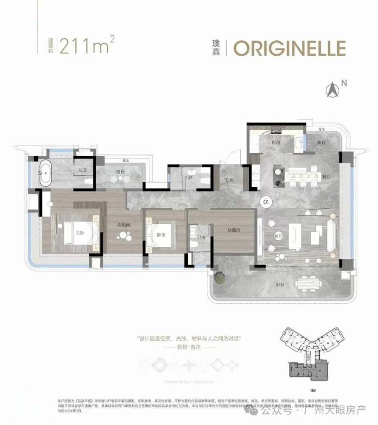 230平户型拥有私家电梯厅、双主套、独立佣人房、南北对流、LDKB大方厅、主卧L型270°飘窗等,大大提升了整体的空间体验。