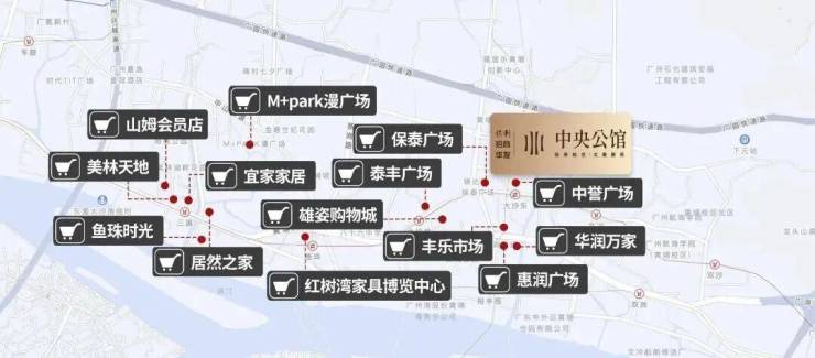 周边即享惠润广场、沃尔玛等商业配套,5公里范围内就能到三溪美林天地、保利鱼珠时光、山姆会员店、居然之家、M-PARK漫广场等大型商业配套。