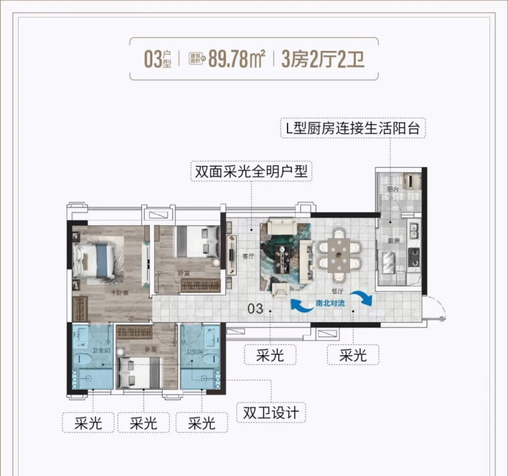 南北对流,通透明亮
