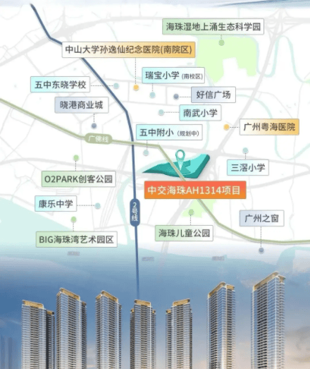 对于家庭购房者来说,教育和医疗配套的确定性很重要。中交天翠自身规划了一所9班制幼儿园,步行约300米就是海珠五中附属实验学校,这所学校依托广州五中的教育资源,属于海珠区头部教育集团,目前招生相关信息已较为明确。
