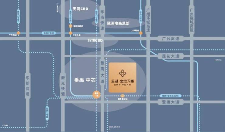 龙湖金地天峯位于地铁番禺客运站上盖,小区楼下就是地铁口。仅需1站地铁,就能到番禺广场,享受五轨交汇的便捷,交通路网十分发达!
