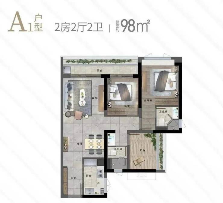 98㎡算是最低门槛的上车户型,三房两卫传统布局,总价400w左右,很多刚需家庭都会选择它上车,因为商业交通教育都满足了。
