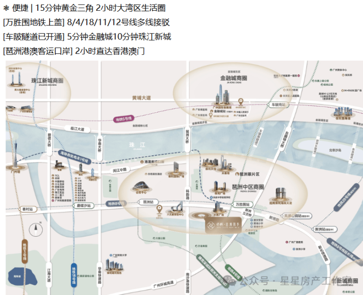 项目位于广州市海珠区琶洲万胜围西南侧,广州地铁4号线与8号线交汇万胜围站A出口300 米左右;琶洲板块作为世界展会造城者,60多载广交会声誉鹊起,全球外贸目光聚焦于此;继珠江新城之后,琶洲接棒城市新发展,打造一江两岸三带“珠金琶”CBD版图,奔涌着向世界出发。