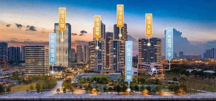 广州滨江上都·璇湾,为广州滨江上都第一期组团,总占地123653㎡,总建筑面积317811㎡,总计容面积约230000㎡(含小学),配建一所12班幼儿园+托儿所(位于璇湾B区)及一所小学(30班)