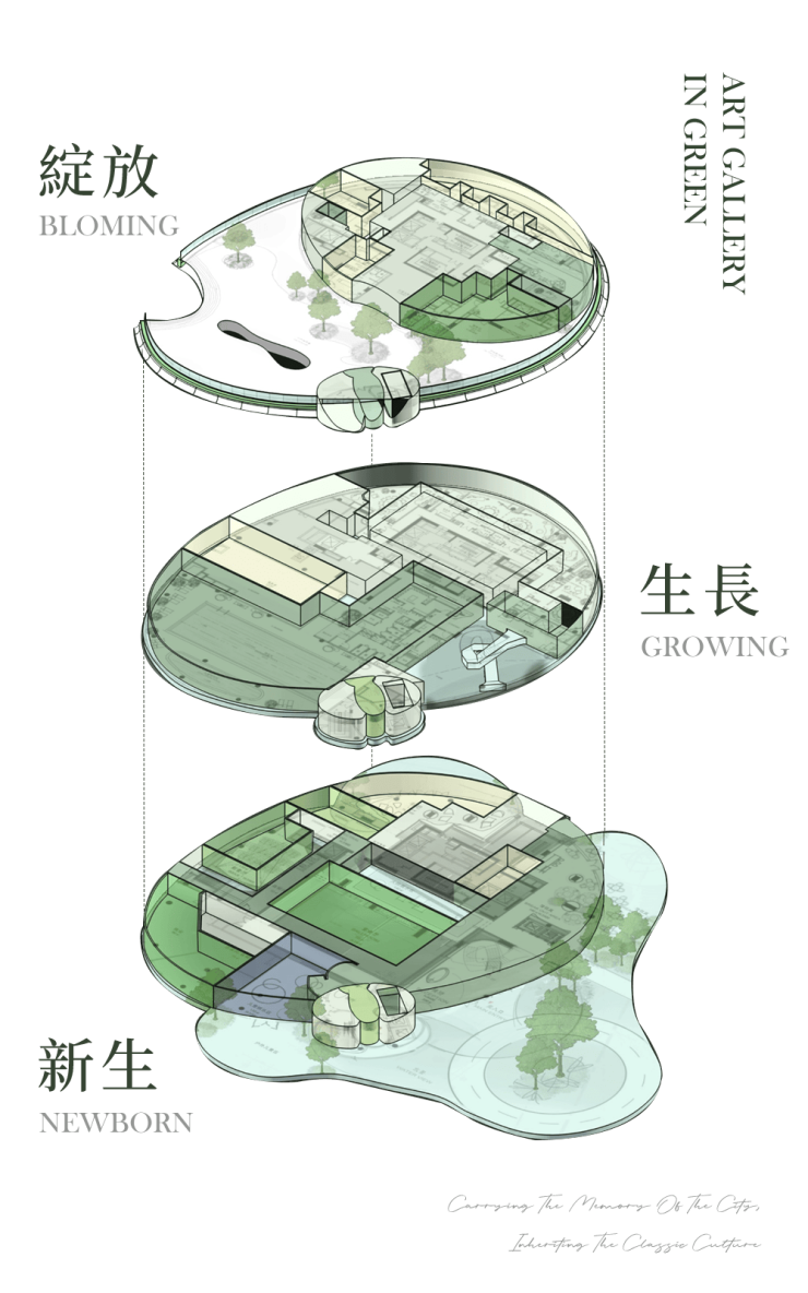 纹理不再是被动铺陈,而是顺应空间形态自然延展、下垂,在静态结构中暗含流动节奏,完成自然与建筑之间的平衡。