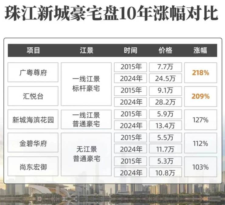 像同在珠江新城东区,占据一线江景的标杆顶豪盘,不仅总价更高,涨幅也远远甩开其它没有江景或者品质一般的豪宅盘。⛪广州幸福湾售楼处电话:4009620133☎开发商已认证🌇🌇