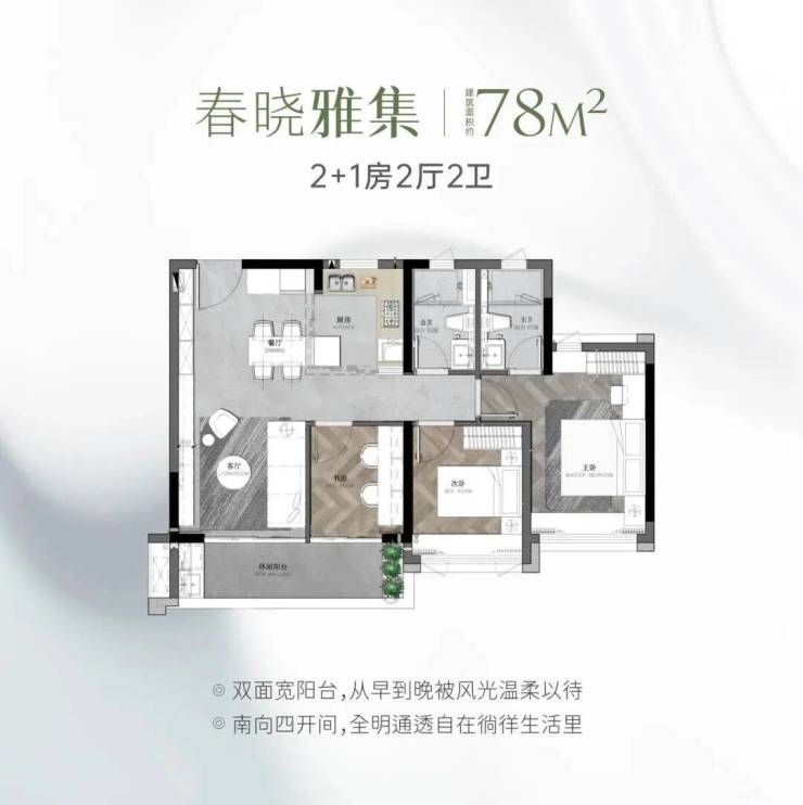 建面约 89㎡的 3+1 灵动户型,可随需求而变,满足不同家庭阶段的需求。