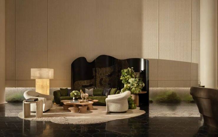 ▲大堂中对称分布的两个会客厅,保利·天奕,广州,实景图