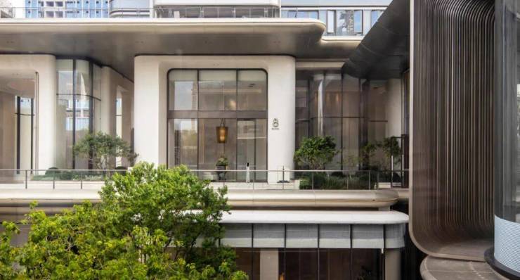 这样的风雨连廊,把保利·天奕的每一幢楼都连接起来,而且是与每一幢楼的架空层一体化打造。楼王的单元大堂,层高达到了约10米,比三层楼还要高。其他楼幢的架空层,也有超常规的约5.6米高。超高层高,同样能带来奢侈与宁静的秩序感。