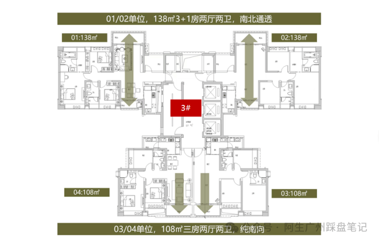 主推108-138㎡三至四房,南北通透;两梯四户/三梯四户,带精装+智能家居,适合改善家庭。