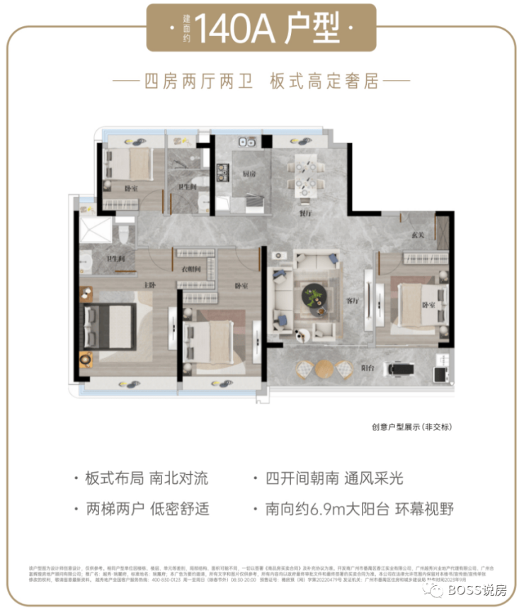 居住体验舒适:容积率仅 1.6,属于低密社区,建筑密度低,楼间距宽,近百米的楼距保证了居住的私密性和良好的采光通风。户型设计多为纯板式一字楼,南北通透,采光和通风效果好,并且专梯专户,业主能够享受到尊崇的归家礼遇。
