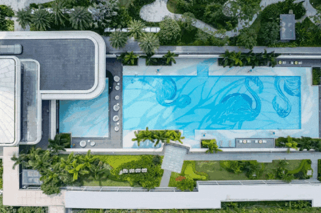 社区配套设施完善:小区内配备了双层泳池、超 2km 步道 + 跑道、百米山顶滑梯、篮球场、网球场、羽毛球场、健身房等设施,满足了居民的休闲娱乐需求。此外,还打造了约 1677 米的全风雨连廊绕着各个楼栋,业主回家不担心日晒雨淋。