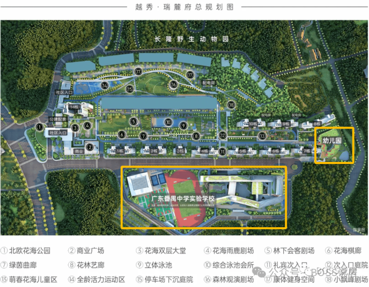 教育资源优质:项目配套九年一贯制的广东番禺中学实验学校,学校硬件设施先进,由华南理工大学何镜堂院士团队设计,投资巨大。学校隶属广东番禺中学教育集团,师资力量雄厚,采用创新小班制教学和全课程教育模式,为孩子提供了良好的教育条件和成长环境。