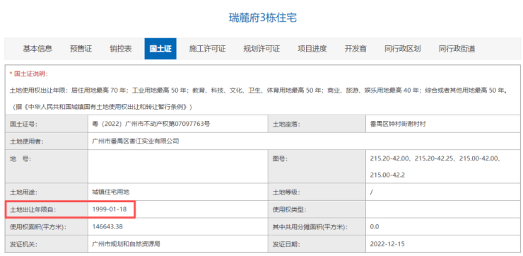 地块历史问题:地块为 1999 年长隆拿的地,产权年限已有所减少。