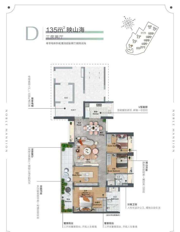 诺德阅山海深圳诺德阅山海花园,是由中铁置业打造的“阅”系高端居住产品,涵盖住宅、商业及公共配套设施。地处核心城市近郊范围,有别于市区的快节奏生活,以休闲宜居为宗旨打造居所与自然完美融合的生活圈。项目背山面海,直面一线黄金海岸,铺展约360°山海围合院落,实现人与自然的和谐共存,引领居所回归本真。