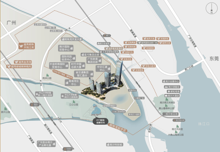 周边金融机构:国际金融论坛永久会址IFF(在建)、广州期货交易所(已注册)、粤港澳大湾区商业银行(规划)等。