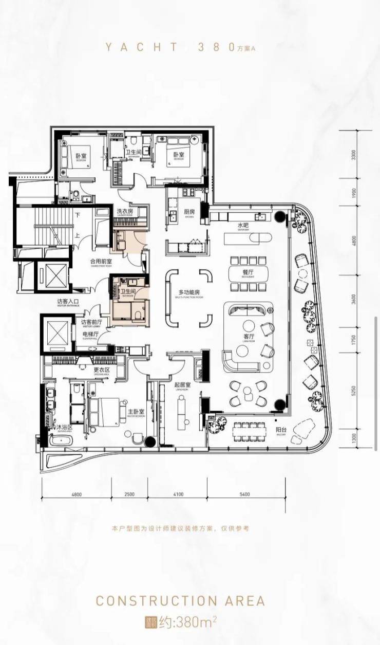 项目大平层豪宅组团【明珠湾壹号】,建筑面积约320-380㎡,是拥有270°海景视野的高端豪宅。从套内户型格局、国际设计风格、高档品质精装及智慧系统功能,全面匹配精英人群生活所需,致力于成为湾区人居典范。