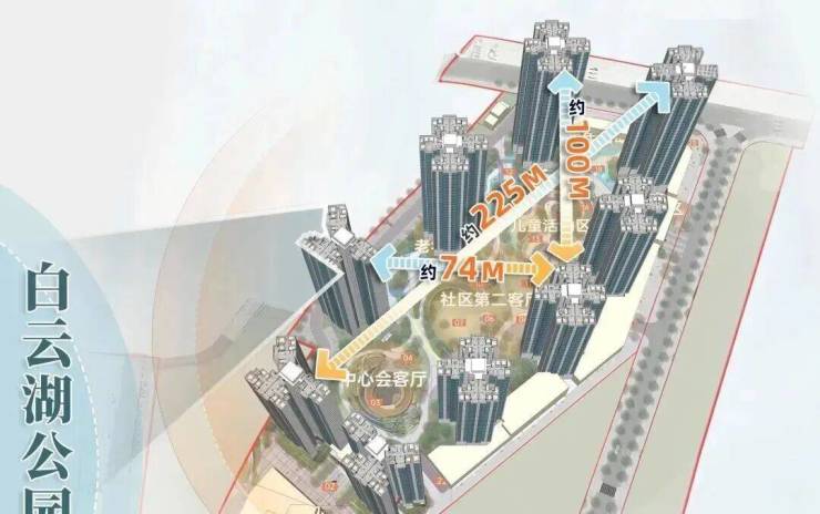 另外小区紧邻白云湖生态公园东门,实测只有100米距离,仅仅一路之隔,真正做到推窗即见秀丽湖景! 白云湖生态公园约200万㎡,是荔湾湖、东山湖的3倍,是目前广州最大的人工湖。