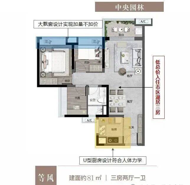 📣约90㎡三房二厅二卫:全南采光,卧室全飘窗,加量不加价!!