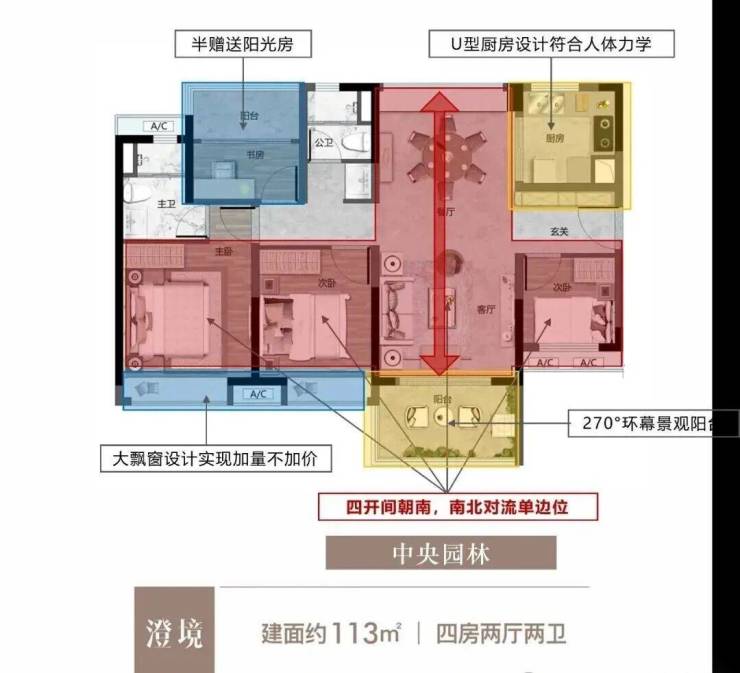 📣约113㎡四房二厅二卫:双厅南北对流,大飘窗设计,享受极致开阔!
