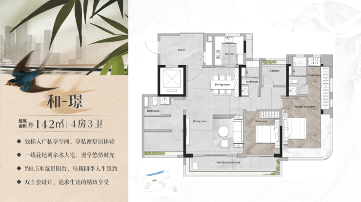 □ [142㎡四房两卫] 一线花地河景观,中轴王座