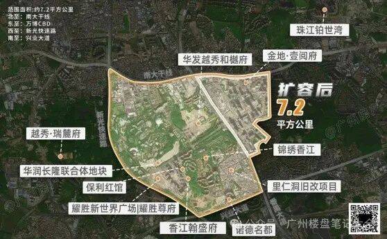 万博扩容后,从原来约1.5平方公里扩至约7.2平方公里,超越珠江新城(约6.2平方公里),成就“文商旅居产”综合型商圈!