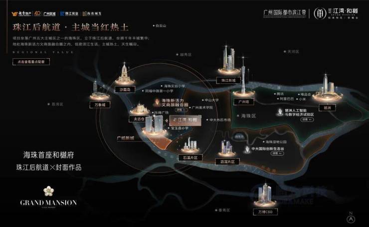 项目坐落广州主城海珠区,立于珠江后航道,坐拥千年羊城繁华;地处海珠新活力文商旅融合圈之内,低密滨江生活,主城热土,天生瞩目