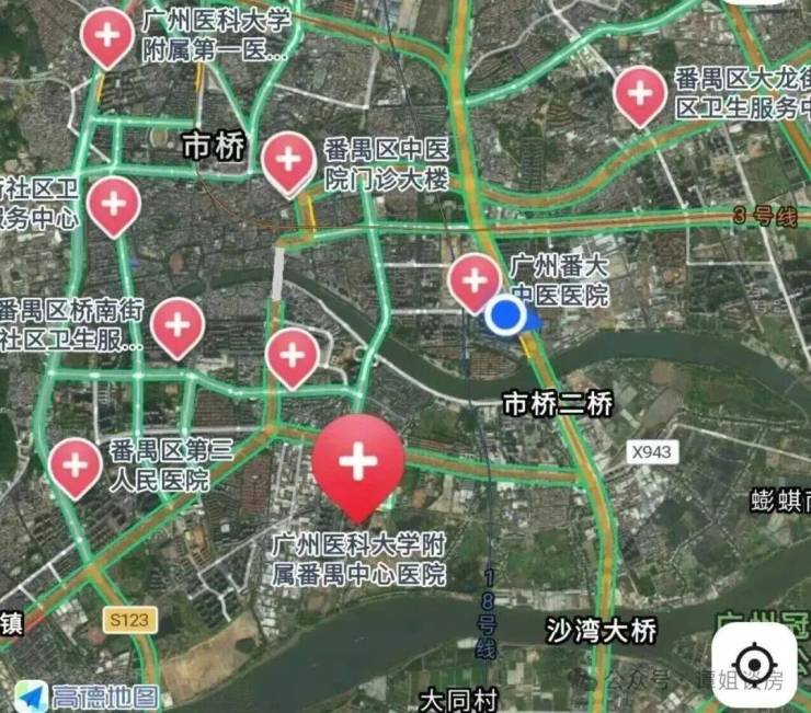 三甲广州市番禺区中心医院3公里、番禺中医院二甲何贤纪念医院、广东省口腔医院番禺分院。