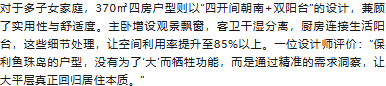 住宅4层起,户型分布,分成低区、中区、高区。 中区是6梯5户设计,户型为210㎡、220㎡、280㎡、340㎡、350㎡。 高区是6梯4户设计,户型是285㎡、330㎡、400㎡。