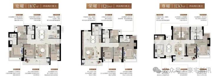 同等户型更舒适尺度:约93㎡宽幕三房约5.7米阳台直连客厅,舒适尺度媲美四房;约103-107㎡四房双跨宽景阳台,开阔尺度龙华稀缺。